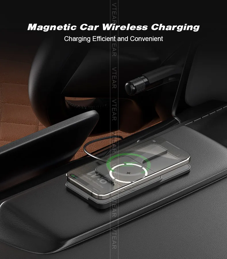 This magnetic car wireless charger is designed to provide fast, stable, and convenient charging while keeping your device securely in place. With its ultra-slim profile, non-slip surface, and strong magnetic alignment, it fits seamlessly into any vehicle interior and ensures your phone stays positioned for optimal charging during every drive.