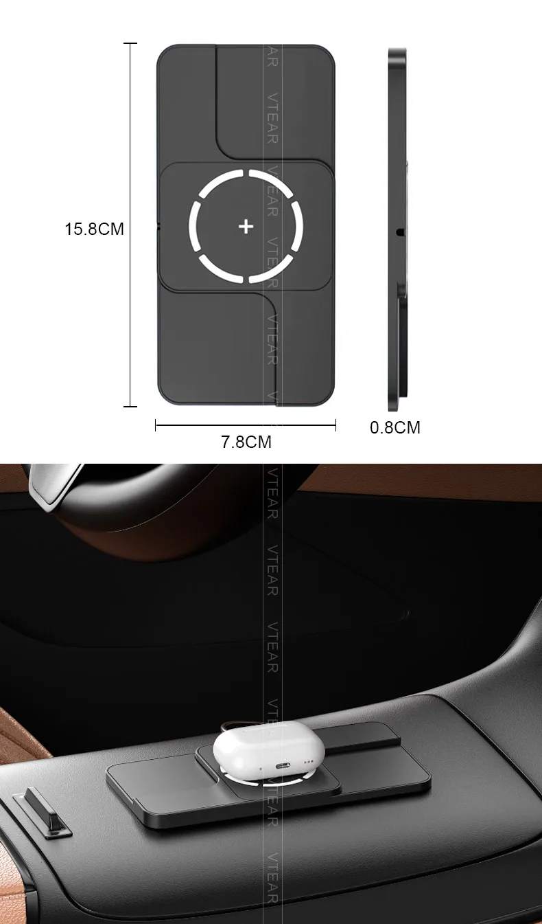 With a thickness of only 0.8 cm and a compact size of 15.8 × 7.8 cm, this charger fits effortlessly into various areas of the car interior, maintaining a clean and organized appearance.