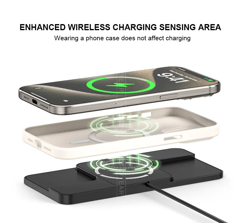 Compatible with iPhone 12/13/14/15/16/17 series, MagSafe cases, Samsung devices, and all Qi-enabled phones and earbuds.