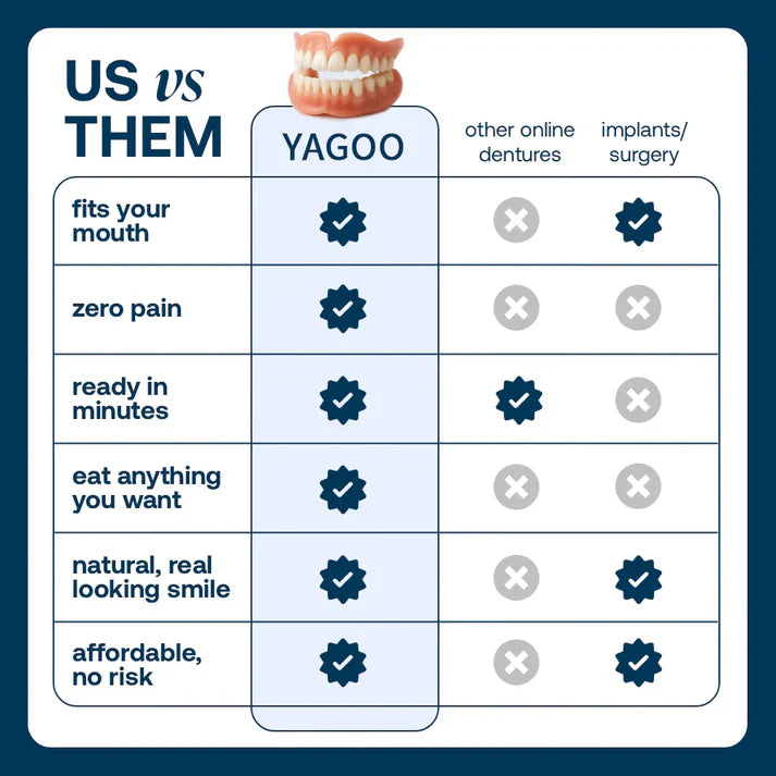 Yagoo® - Premium Denture es adecuado para adultos de todas las edades, especialmente para aquellos que han perdido dientes debido al envejecimiento, caries u otros problemas dentales. Ofrece un ajuste cómodo y una apariencia natural, siendo ideal para cualquiera que desee restaurar su sonrisa y confianza.