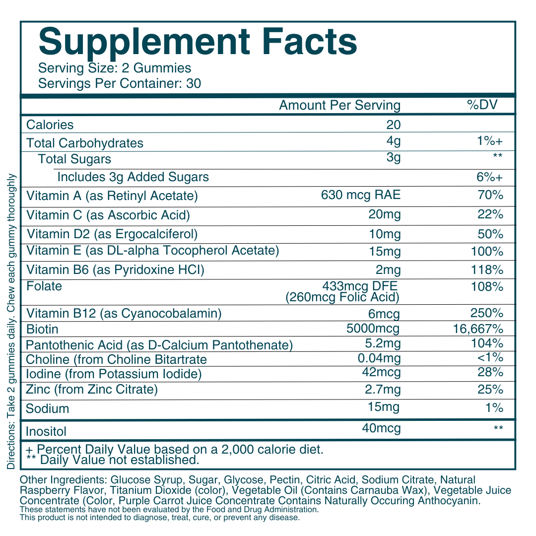 PAICÉALTA LE VITIMINÍ - Mothaigh go hálainn agus tacaigh do do shláinte le meascán comhcheangailte Biotin agus vitimíní éagsúla - amhail Vitimín A, C, E, B5, B6, B9, - a chabhraíonn le do chorp na cothaithigh riachtanacha a thabhairt do do chuid gruaige, craiceann agus ingne.