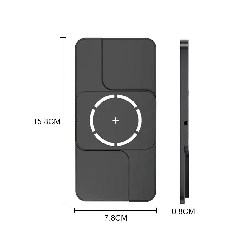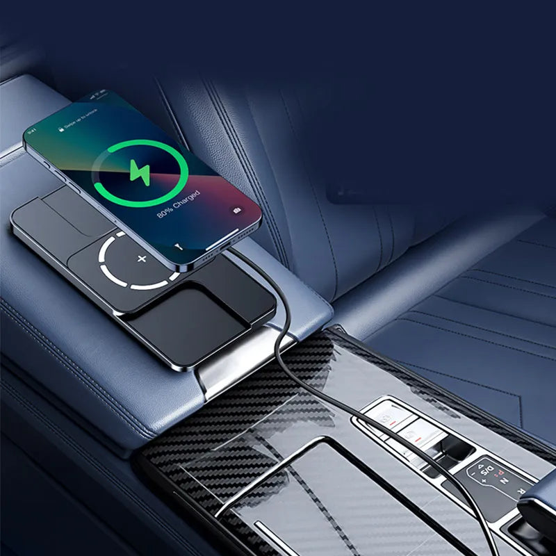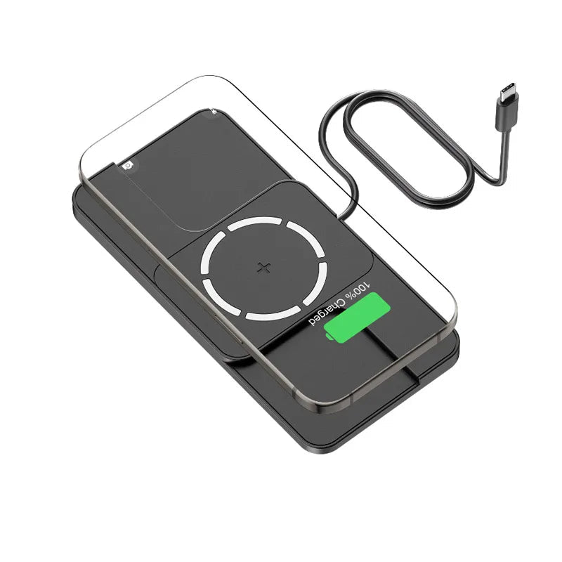 Gnéithe limistéar luchtaithe maighnéadach do ghutháin agus pad gan sreang cothrom do earbuds nó gléasanna níos lú, rud a fhágann go bhfuil sé áisiúil le haghaidh luchtaithe ilghléasanna le linn taistil.