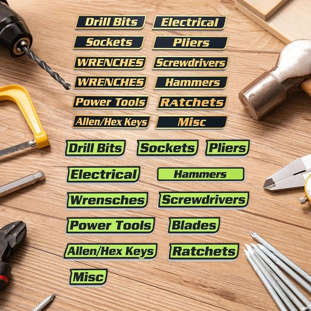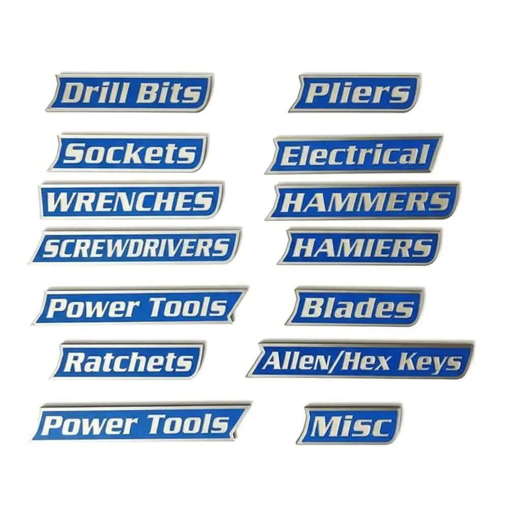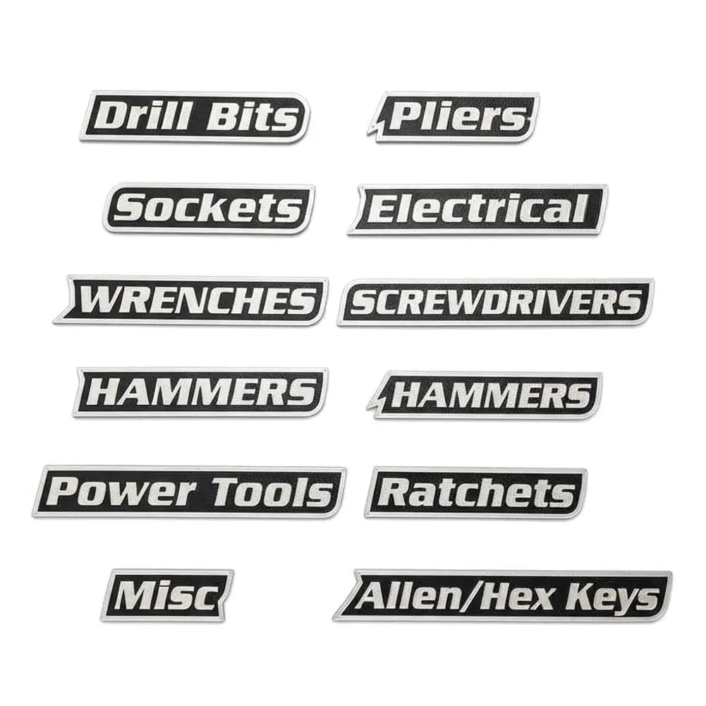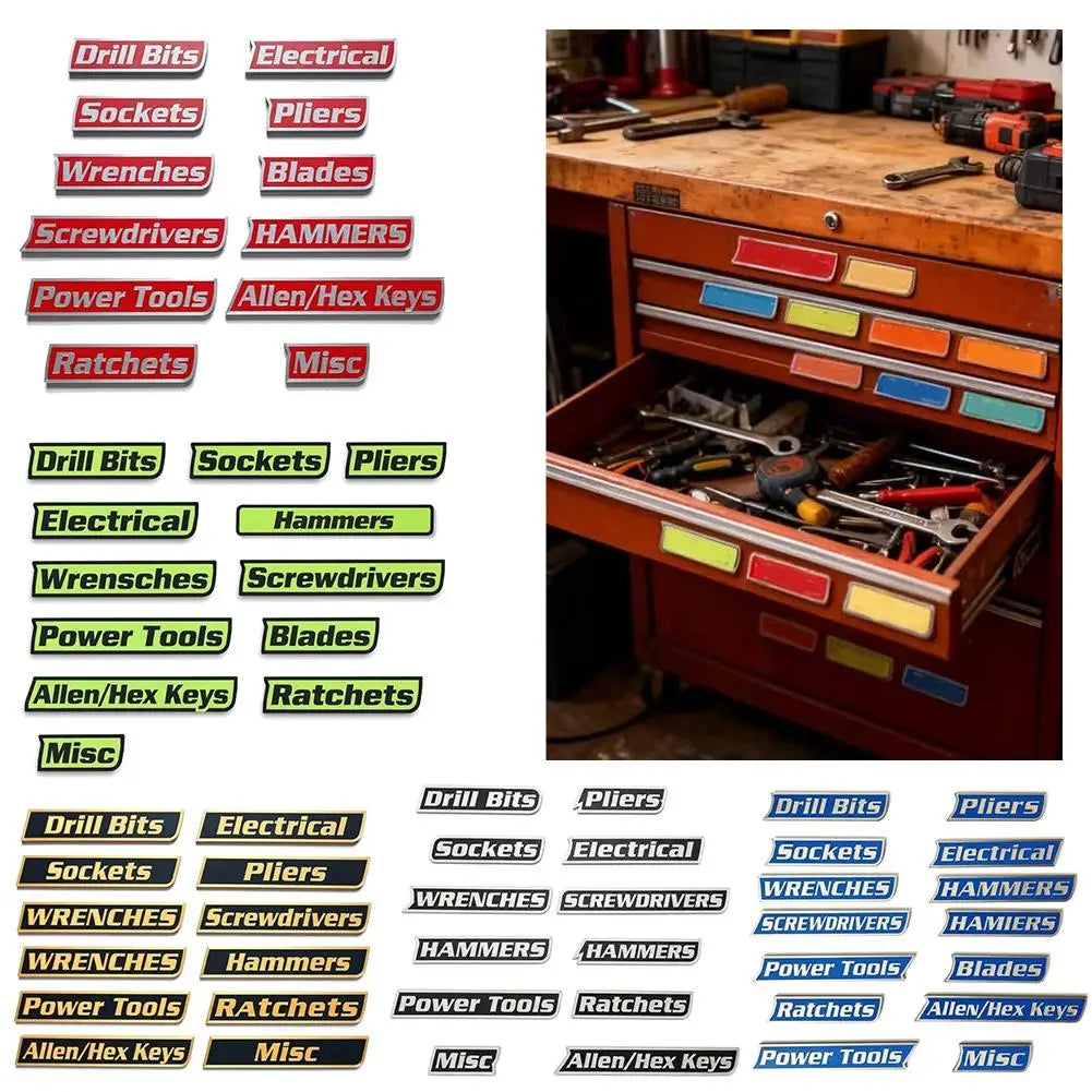 aangepaste magnetische labels. Deze 12-pack is ideaal voor gereedschapswagens, kisten, lades en kasten. Perfect voor garageprofessionals, deze gepersonaliseerde labels helpen je je gereedschap efficiënt te beheren. Ontworpen om te passen op diverse gereedschapskisten, wagens, kasten of lades, maken deze magneten organisatie eenvoudig. Geweldig voor monteurs, hobbyisten, doe-het-zelvers of als cadeau voor gereedschapsliefhebbers.📦 Wat is inbegrepen?·Standaard 12-Pack Bevat: BOORBITJES, DOPPEN, ELEKTRISCH, TANGEN, SLEUTELS, SCHROEVENDRAAIERS, HAMERS, MESSEN, ELEKTRISCH GEREEDSCHAP, RATELS, ALLENS/HEX, DIVERSEN
