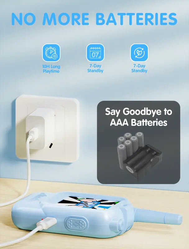 Mogą komunikować się na odległość 100–200 stóp w zależności od ścian, pomieszczeń i przestrzeni na zewnątrz. Idealne do zabawy w domu, na podwórku lub w parku.