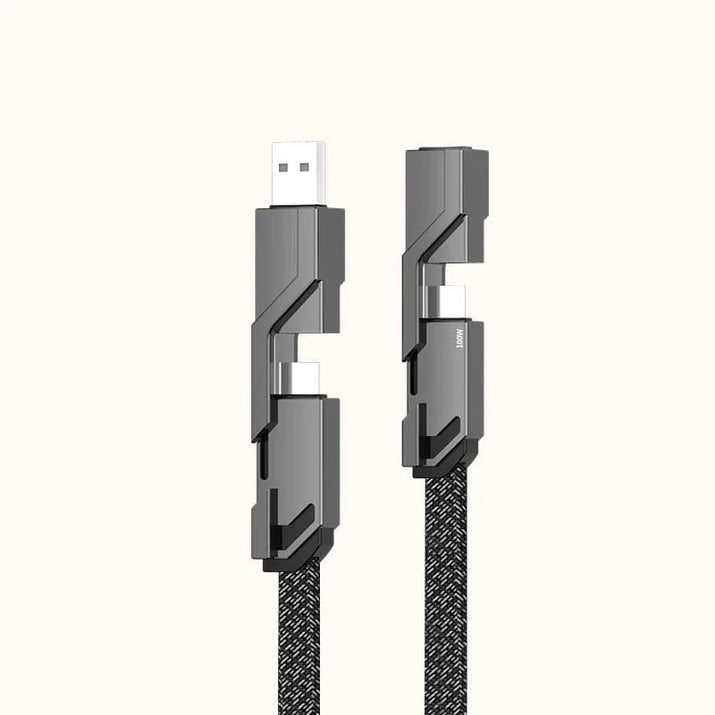 4-in-1 Flat Braided Anti-Tangle Charger Cord with Velcro