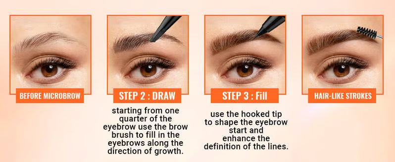 Answer 3: To achieve a natural look, use the angled square brush to fill in your brows following the hair's natural growth direction, and apply hair-like strokes to fill any gaps. The microblading tip aids in creating realistic, defined brows.