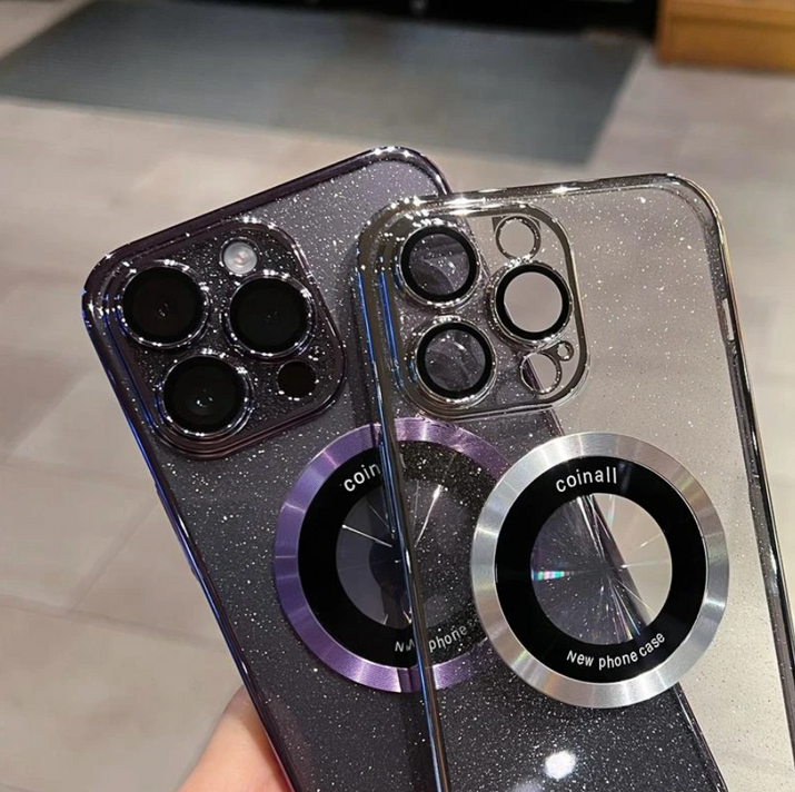 Electroplated glitter leaky label magnetic apple phone case
