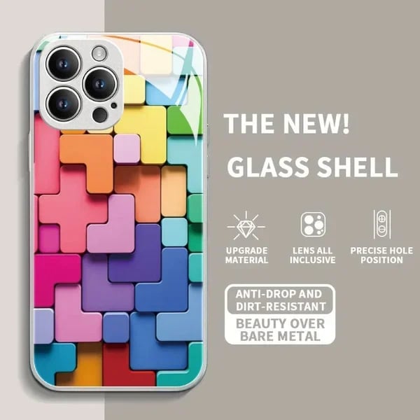 Flat 3D Square Pattern Glass Case for iPhone 15promax case