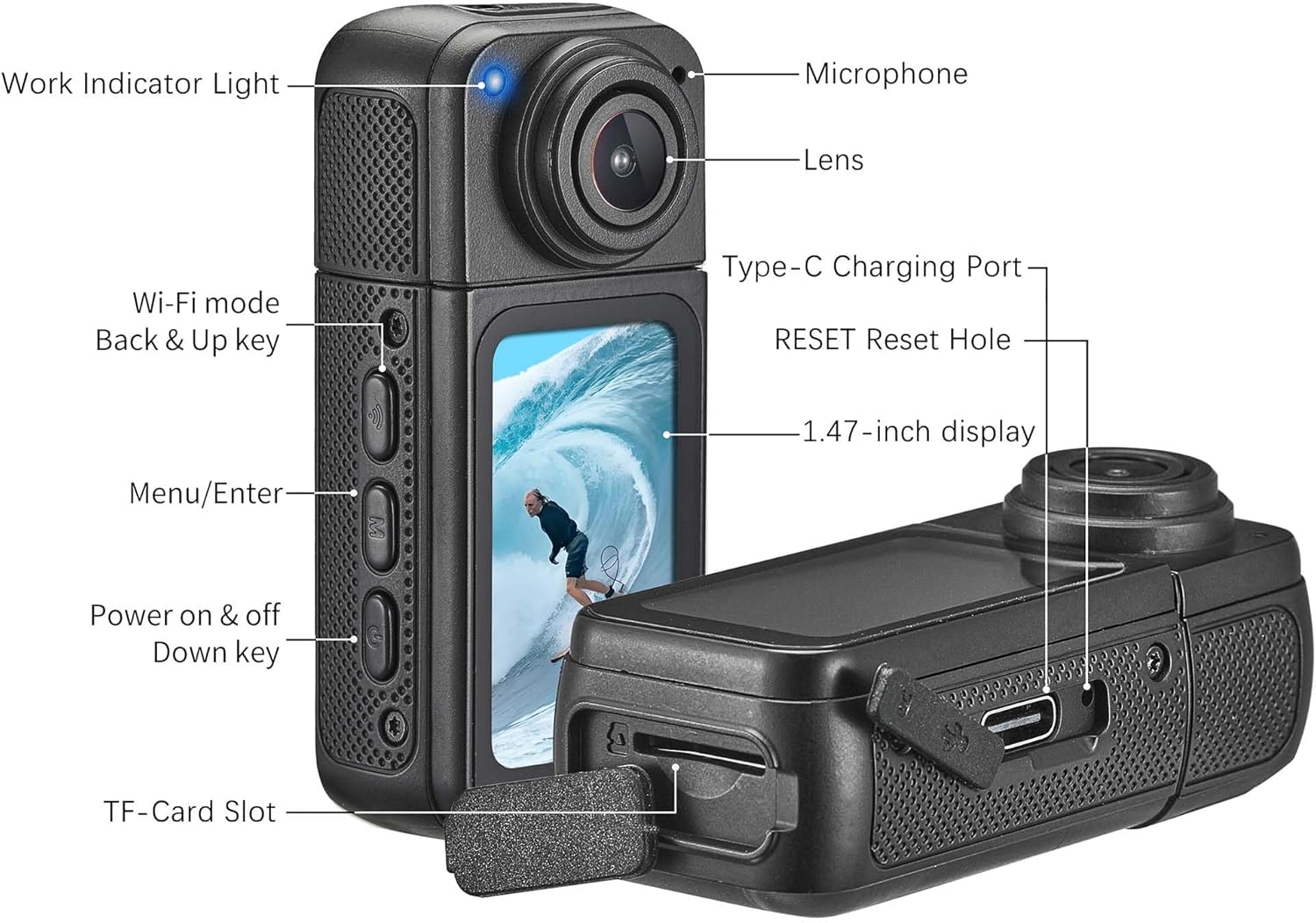 The camera records in2.7K resolution, providing sharper video than standard 1080p.