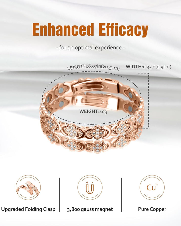 Our product combines exquisite design with exceptional healing properties, ensuring you not only look good but feel great. The unique blend of pure copper and powerful magnets offers unmatched therapeutic benefits for daily comfort.